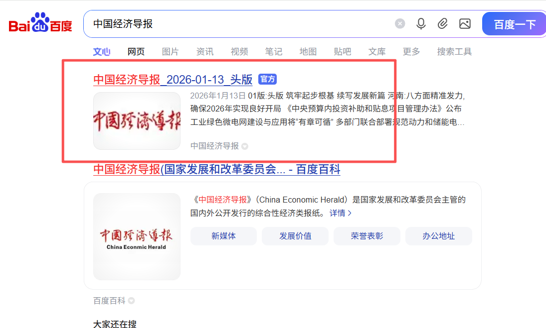 1、自己联系官网电话咨询方式。可以百度搜索“中国经济导报”,看到如下图: