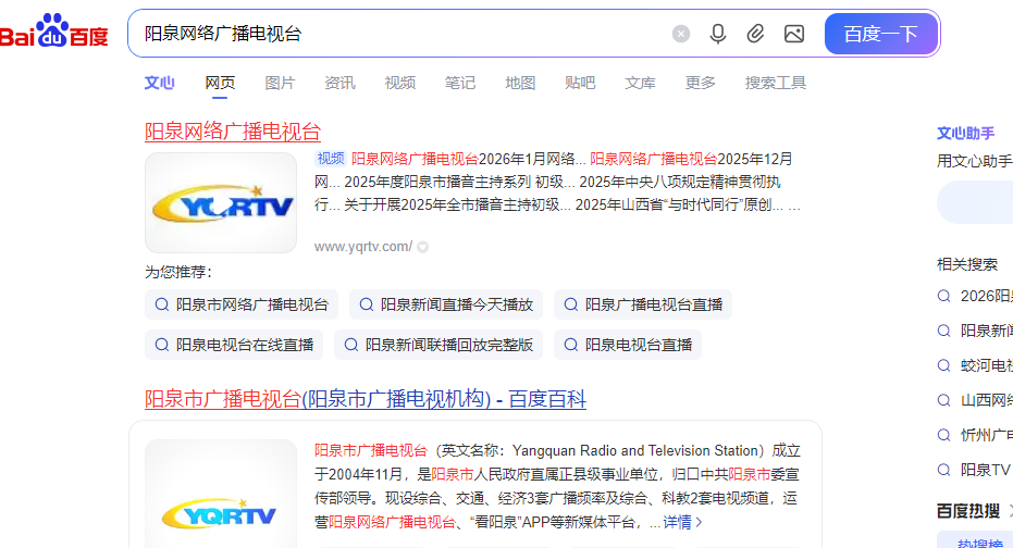 阳泉网络广播电视台怎么投稿?1.在百度上找“阳泉网络广播电视台”,然后看官网,如下图示: